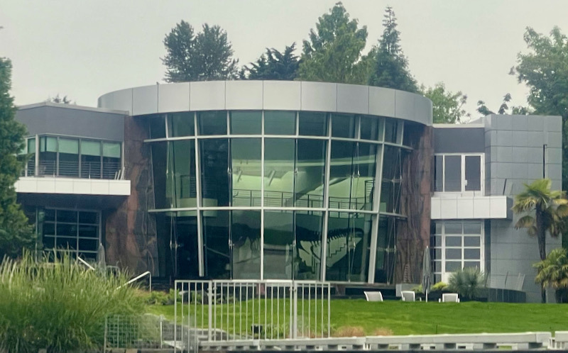 I followed the shoreline north looking at all the Uber-wealthy houses of Bellevue and Medina. The trees are noticeably larger on this section of shore. The security guards didn’t show as I passed by the docks of the Gates house. I stopped to look at the T-rex house.